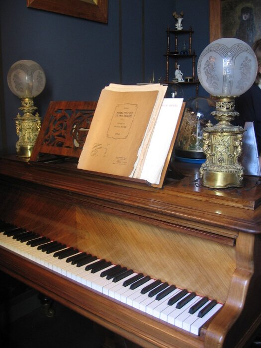 Керосиновые лампы на рояле сейчас и при жизни композитора.