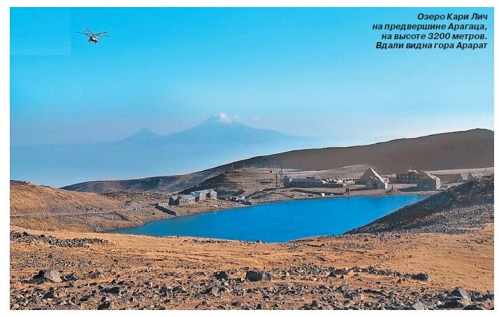 Мы прибыли к горному озеру Кари Лич, так называемой предвершине Арагаца, которое находится на высоте 3200 метров. Кстати, уже там воздух разряжен и дышится тяжело. Поднимались на Арагац 4 часа, спуск длился около 3 часов. Погода стояла ясная, солнце было таким горячим, что обжигало. Нам открылся красивейший вид, казалось, с высоты Арагаца мы увидели всю Армению. Большое впечатление произвел также кратер Арагаца, находящийся посередине его четырех вершин.