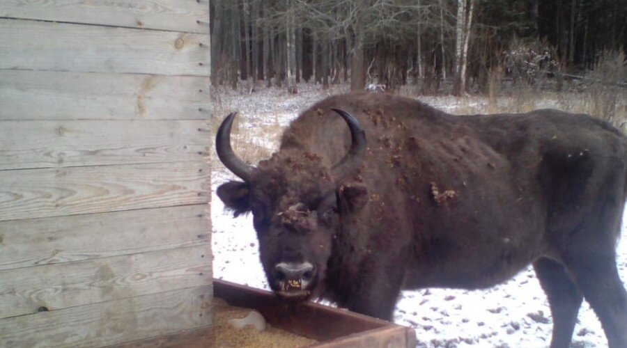 В заповеднике «Калужские засеки» зубры пришли за подкормкой