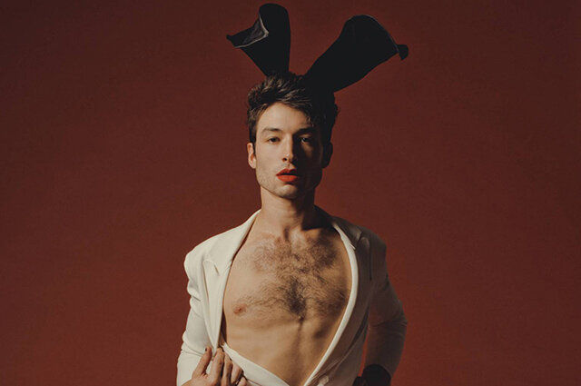 26-летний актер Эзра Миллер всегда любил удивить публику экстравагантными образами и выходками. Несмотря на молодость, он - благодаря своим запоминающимся выходам на красных дорожках - уже заслужил "звание" иконы стиля, героя светских и модных хроник. Но, видимо, этих лавров юному дарованию показалось мало, и он решился на рискованный эксперимент. Звезда фильмов "Фантастические твари" и "Отряд самоубийц" принял участие в провокационной фотосессии для мужского издания Playboy и эти фото уже наделали много шума. (Внимание: ценителей классических мужских добродетелей и мужественности прошу дальше не читать, дабы не травмировать этими образами свою психику:). Возможно, создатели фотосета решили обыграть логотип своего журнала и сюжет фильма "Фантастические твари и где они обитают", который был полон самых невообразимых существ. Так под прицелом фотовспышек на свет появился образ Эзра Миллера в заячьих ушках. Пишут, что у актера свободные взгляды на гендерную принадлежность. Он не против оп