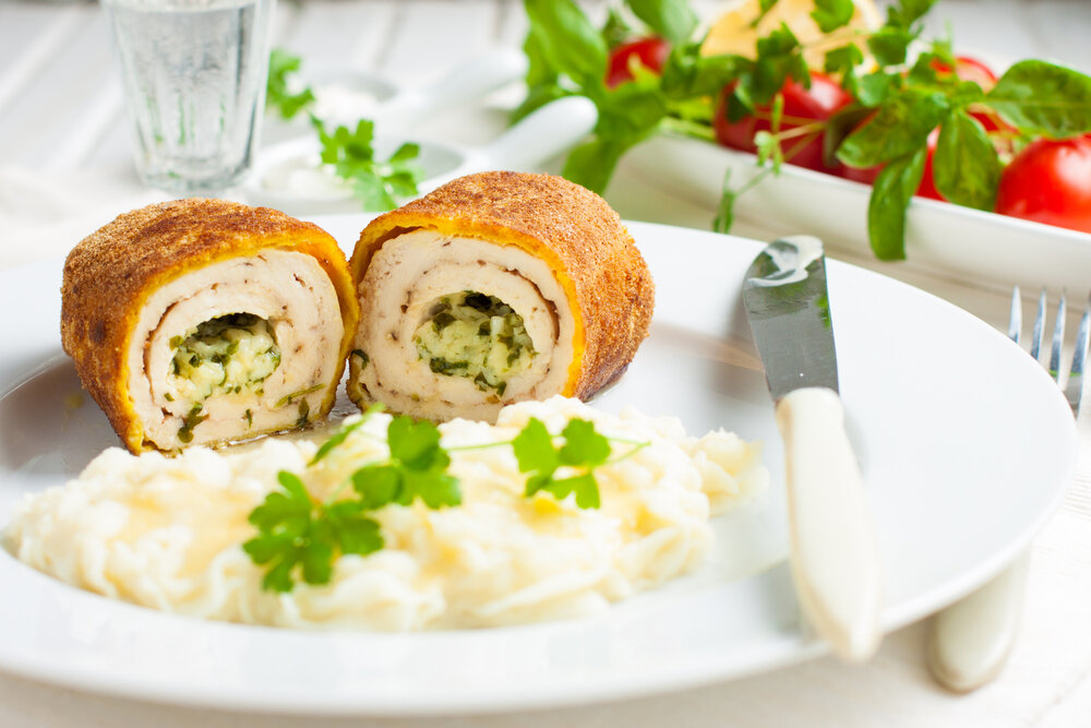 Вкусная куриная котлета с сочной сливочной серединкой – это котлета по-киевски. Блюдо, известное еще с первой половины 20 века интересно своей подачей: нежное куриное филе, обжаренное во фритюре на тонкой куриной ножке. Не каждая хозяйка решится сделать котлеты по-киевски в домашних условиях. Действительно тонкостей немало: от техники сворачивания самой котлеты, до особенностей панировки. Но если следовать рекомендациям и не пытаться изменить рецепт, то блюдо наверняка получится с первого раза. Главные секреты приготовления котлеты по-киевски в домашних условиях: Котлеты по-киевски, пошаговый рецепт Ингредиенты: Этапы приготовления: Теперь вы знаете как приготовить котлеты по-киевски. Как видите вкусное блюдо делать совсем не сложно, а процесс приготовления отнимает не более получаса. Нравятся наши статьи? Подписывайтесь, ставьте лайки и ищите вкусные и полезные идеи на chefmarket.ru :) Посмотреть новогоднее меню
