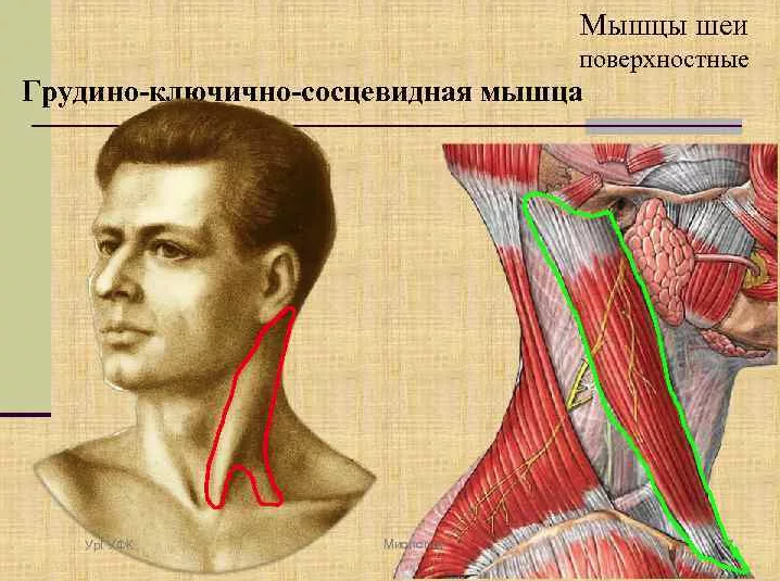 Сложным своим названием эта мышца обязана особенностям расположения: с одной стороны она крепится к сосцевидному отростку височной кости, а внизу соединяется с верхней точкой грудины и ключицей.
