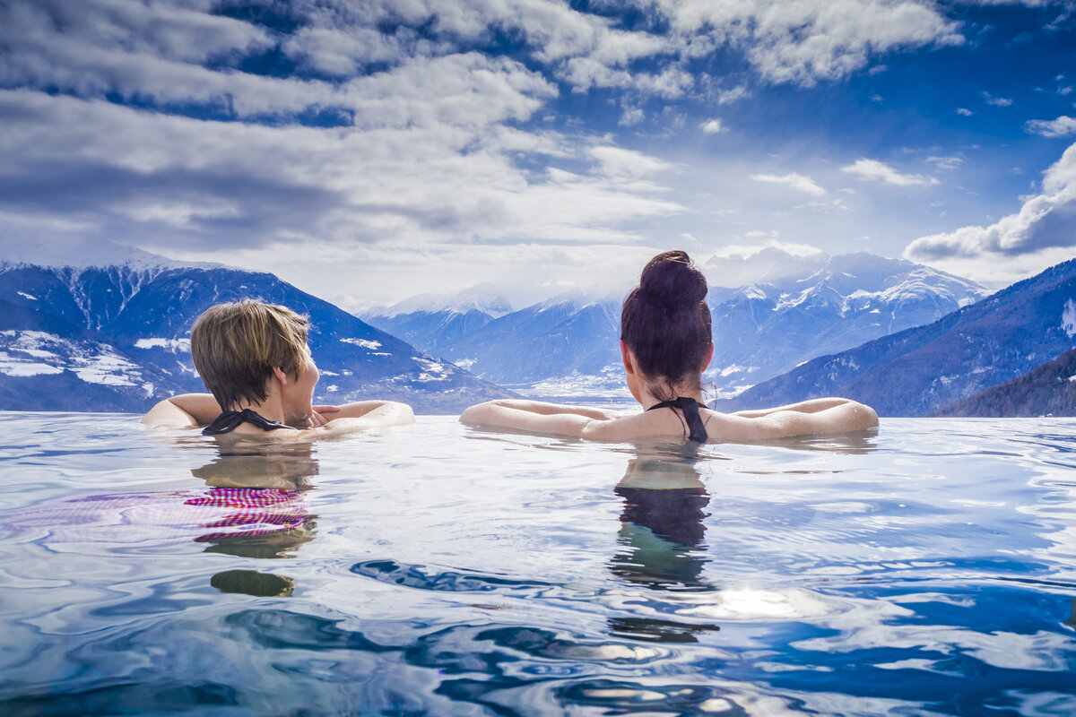 В термах было множество бассейнов с разной концентрацией соли. Мне больше понравились бассейны, которые находились на улице. Скорее всего из-за пейзажей. Плавая в бассейне, можно увидеть снежные горы, замок Нойшванштайн. Красотища!