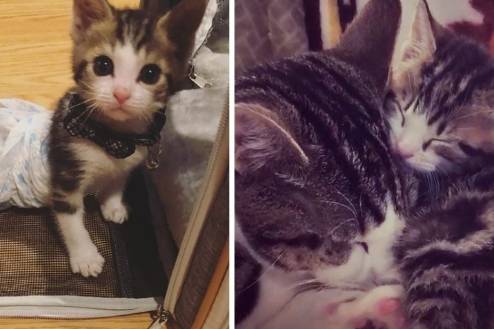 Котенок, передвигающийся на коляске, теперь бегает быстрее, чем другие кошки и дарит свою любовь брошенным собратьям