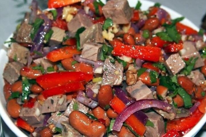 Фасоль - представитель бобовых, содержит полезные для нашего организма вещества. Фасоль богата незаменимыми аминокислотами, благодаря чему блюда из нее хорошо усваиваются. Ее очень любят во многих странах. Предлагаю Вам попробовать приготовить очень вкусный салат из фасоли. Нам понадобится: Фасоль красная консервированная - 1 банка Мясо отварное (любое) - 200 г Лук красный - 1 шт Перец болгарский - 1 шт Чеснок - 1 - 2 зубчика Петрушка - 1 пучок Орехи грецкие - 50 г Соль, специи Масло растительное для заправки Начинаем =>