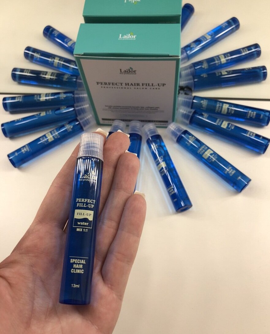 В интернете на каком то форуме я наткнулась на филлеры от La'dor Perfect Hair Filler, почитала отзывы и решила себе заказать упаковку, ведь цена приемлемая. За 10 ампул около 970 рублей, значит одна примерно 97 рублей.