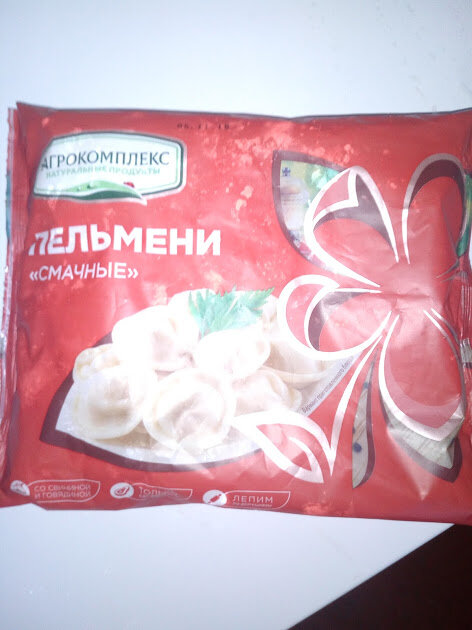 В чаще всего посещаемом магазине Магнит уже несколько раз брали пельмени " Смачные". Производитель - Агрокомплекс. Цена за пачку 450 г 69, 90 руб. Сегодня решили сделать на них обзор. Изображение на упаковке, к сожалению, не соответствует действительности. Они не ручной лепки, а машинной. Но почему-то они не разваливаются при варке. Как они этого добиваются? ... В Новосибирске в частности из-за этого последнее время пельмени в пачках не слишком часто покупали. Вполне съедобны, пачки как раз хватает для перекуса нашей семьи. И еще бонусом получаем наваристый бульон. Мы любим в него добавлять перчик, специи и уксус и есть в прикуску с пельмешками. В составе указаны мука пшеничная хлебопекарная высшего сорта, вода питьевая, свинина, говядина, соевый белок (как же без него?), лук репчатый сушеный ( а вот если бы не сушеный добавили, пельмешки были более сочные), соль, масло подсолнечное, пищевая добавка ( глутамат натрия), ароматизатор ( гранулированный бульон),