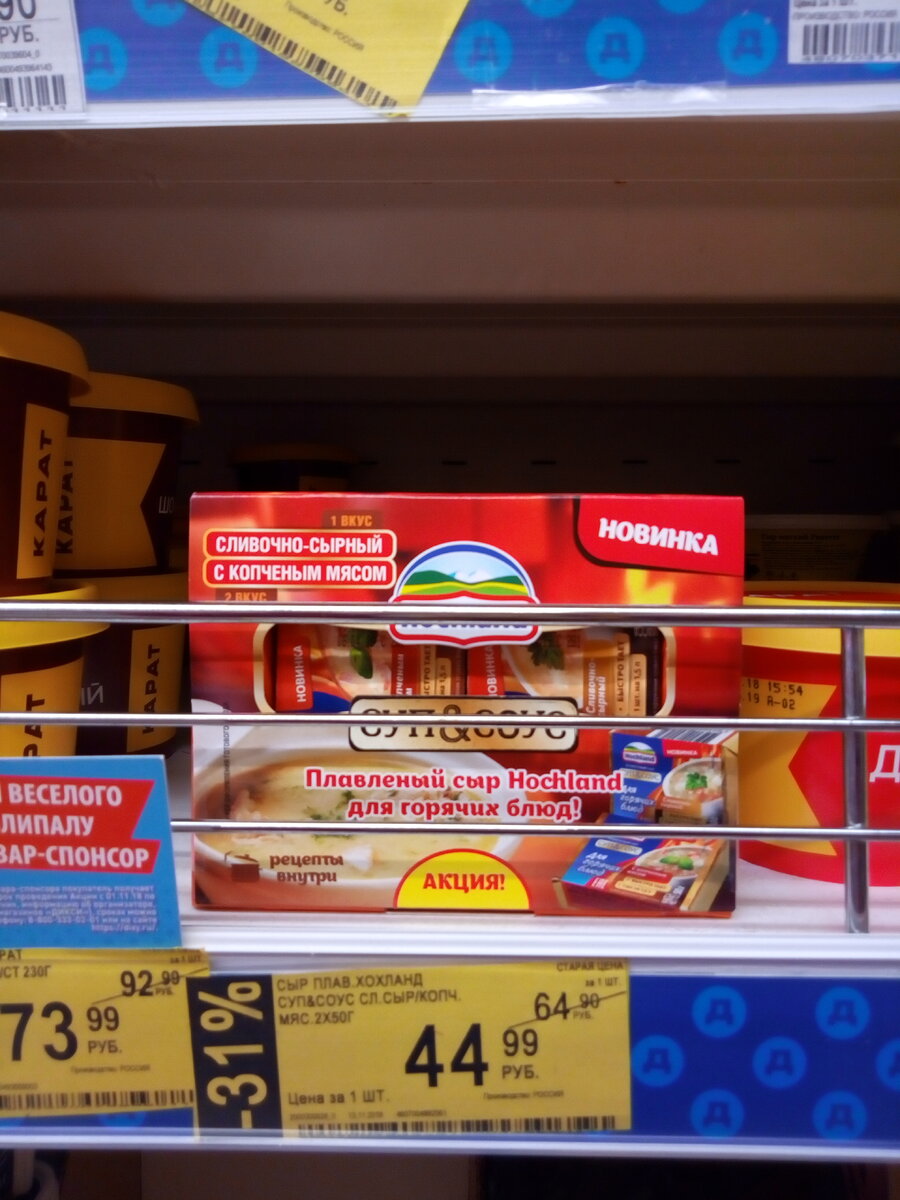 Любите радовать себя маленькими подарками в конце рабочего дня? Вот о них мы сейчас и поговорим. Так, что бы не дорого и приятно душе. Всё как мы любим. 1. Сыр плавленный Хохланд для горячих блюд. 44,99 руб Плавленный сыр для супа! Когда-то давно меня баловал мой друг-вегетарианец таким диковинным борщом. Вместо мяса - сыр! Только то был Адыгейский сыр расплавленный на сковороде. Между прочим, очень вкусно :) Что мы можем приготовить с помощью этого плавленного сыра узнаем только приготовив. 2. Компот Арарат Абрикосовый. 119,90 руб Вот люди пошли! Компот в бутылке! Нет, ну вы представляете?! По-моему, купи три яблока и свари себе два литра компота. Будешь уверен в полезности напитка и сахара добавишь столько, сколько нужно именно тебе. 3. Гвоздика 10г. 29,90 руб О приятном - гвоздика за 30 рублей. Вы видели нынешнюю цену на эту приправу? Почему её во всех магазинах продают за 50-80 рублей? Это дефицит или жадность поставщиков? Мы не любим переплачивать вдвое за обычные продукты! Но с