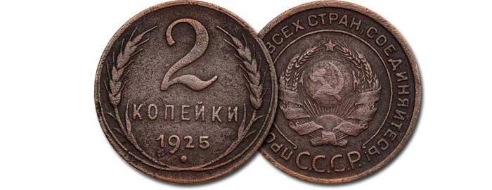 В 1924 годы было произведено огромное число разменных монет. Поэтому в следующий год Ленинградский монетный двор чеканил монеты не всех номиналов. Например, были исключены из производства деньги номиналом 3 и 5 копеек. Долгое время считалось, что и 2 копейки попали в число монет, что не чеканились в 1925 году, пока не был найден в обороте первый такой денежный знак. Число найденных денег не высоко, что позволяет отнести 2 копейки 1925 года к редким экземплярам, стоимость продажи которых редко ниже 50 000 руб.