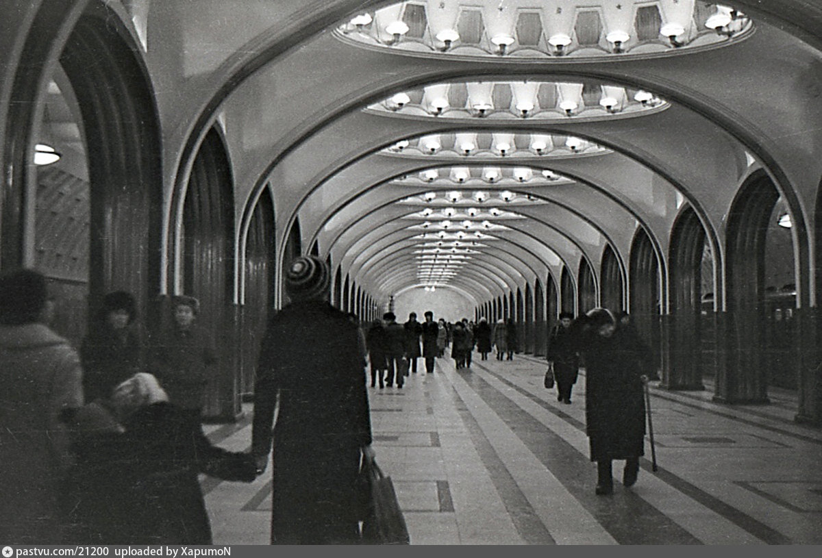 Если посмотреть на панораму станции Маяковская, то можно вообще никакой мозаики не увидеть: взору открывается обширное пространство с покрытым металлом колоннами и круглым освещением наверху. Кстати, эти металлические листы делали по спецзаказу на крупнейшем в СССР металлургическом комбинате "Серп и Молот", на месте которого ныне строят комфортабельные жилые дома.