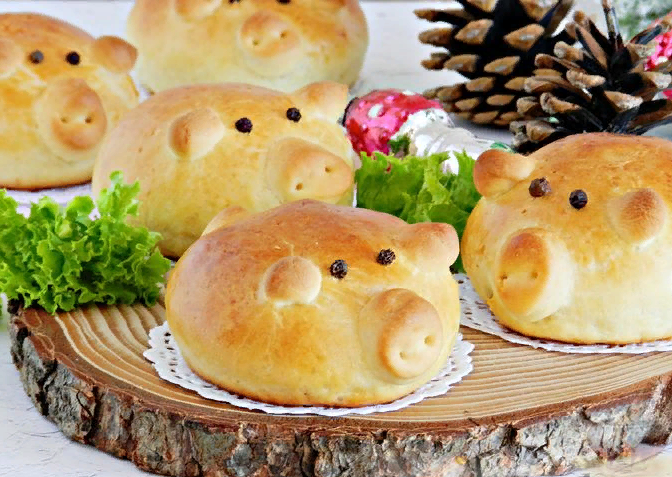 Маленькие пирожки, оформленные в виде забавных поросят - символ наступающего Нового года. Такие пирожки могут не только украсить новогодний стол 2019, но придутся по вкусу всем членам семьи в будние дни. ИНГРЕДИЕНТЫ: Для теста: Мука - 300 г Вода - 150 мл Масло сливочное - 50 г Сахар - 2 ст. ложки Соль - 0,5 ч. ложки Дрожжи сухие быстродействующие - 1 ч. ложка Для начинки: Печень куриная - 250 г Лук репчатый - 1 шт. Морковь - 1 шт. Соль - по вкусу Перец черный молотый (по желанию) - по вкусу Дополнительно: Яйцо куриное (для смазывания пирожков) - 1 шт. Масло растительное - для обжаривания и смазывания противня Перец черный горошком - для "глаз" ПРИГОТОВЛЕНИЕ: Подготовить продукты для пирожков в виде поросят. В качестве начинки не обязательно использовать печень. Можно приготовить такие дрожжевые пирожки с картошкой или мясом, например. Лук и морковь очистить. Нарезать лук кубиками, морковь натереть на терке. Обжарить лук и морковь на растительном масле до золотистого цвета. Печень ку