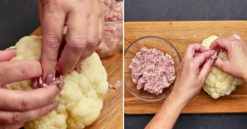 Любимое блюдо моего мужа: фаршированная цветная капуста