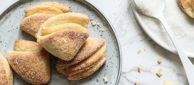 Нежное, рассыпчатое творожное печенье просто тает во рту. Угостите им своих родных, друзей или коллег - восторги и похвалы гарантированы. Советуем сразу сделать побольше! Ингредиенты 16 порций Ванильный сахар Dr. Oetker - 8 г Разрыхлитель теста Dr. Oetker - 10 г Творог мягкий - 250 г Масло сливочное - 120 г Мука - 200 г Сахар - 60 г Способ приготовления Шаг 1 Творог взбиваем с размягченным сливочным маслом до однородной массы. Шаг 2 Добавляем к творожной массе просеянную муку и разрыхлитель. С помощью К-образной насадки или руками замешиваем однородное мягкое и гладкое тесто. Шаг 3 Скатываем тесто в шар, оборачиваем пищевой плёнкой и убираем в холодильник минимум на 30 минут. Шаг 4 Раскатываем охлажденное тесто на присыпанной мукой поверхности. Шаг 5 С помощью кольца (диаметр 10 см) вырезаем из теста 16 кружков. Шаг 6 Каждый кружок одной половиной окунаем в смесь сахара с ванильным сахаром. Шаг 7 Складываем кружок пополам, посахарен