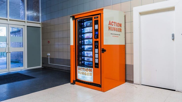 Вендинг автомат для бездомных «Action Hunger», установленный в городе Манси (штат Индиана), предоставит нуждающимся бездомным людям одеяла, чистую и теплую одежду. Автомат выдает необходимые товары совершенно бесплатно для любого нуждающегося члена благотворительного общества. Для того чтобы воспользоваться вендинг автоматом, бездомному необходимо сначала зарегистрироваться в благотворительной организации «Bridges Community Service»s. Как только это будет сделано, нуждающиеся люди, получают бесплатные токены, которые они могут использовать для доступа к товарам торгового автомата. Но Манси не является первым местом, где открылся бесплатный торговый автомат для бездомных жителей. Организация «Action Hunger», установила первый свой автомат в начале 2018 года в Ноттингеме (Англия). Однако первый автомат отличался своим ассортиментом, в автомате были доступна еда, гигиенические принадлежности и носки. Автомат также позволял обездоленным гражданам брать необходимые товары и