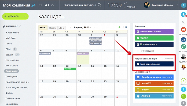 К сожалению, распространенное явление, когда во многих компаниях подразделения по продажам и маркетингу (если это не единый департамент) не очень тесно «дружат» между собой. Мы не будем здесь затрагивать вопросы политико-организационно-психологические — это другая тема, но можем подсказать инструмент, который, по крайней мере, будет способствовать усилению слаженной работы с клиентами. Это решение мы не сами сгенерировали – его нам подсказали в компании Белвингрупп, где оно уже реализовано и успешно функционирует благодаря взаимному стремлению их подразделений продаж и маркетинга к слаженной работе. В Битрикс24 есть такой инструмент как Календари. Они есть личные, есть Календари компании. Их можно в любых сочетаниях интегрировать и «расшаривать». Так вот, для продаж и маркетинга создается общий Календарь компании, где сотрудники обоих отделов отмечают планируемые события по работе с клиентами: звонки, встречи, поездки. Если при этом в комментариях к событиям будут расписаны подробности