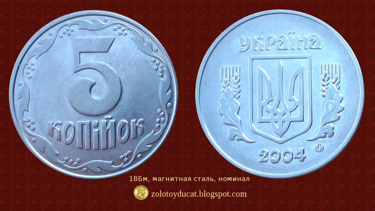 5 копеек 2004 года, Украина Украинская монета 5 копеек 2004 года, оценивается в номинал, но среди этих монет попадаются и такие, за которые коллекционеры могут предложить 2 - 4 доллара. Среди целой кучи пятаков, в основном, 2014 года, попался один 2004 года. Монет, с датами в промежутке между 1992 и 2004 годами, вообще не нашлось.