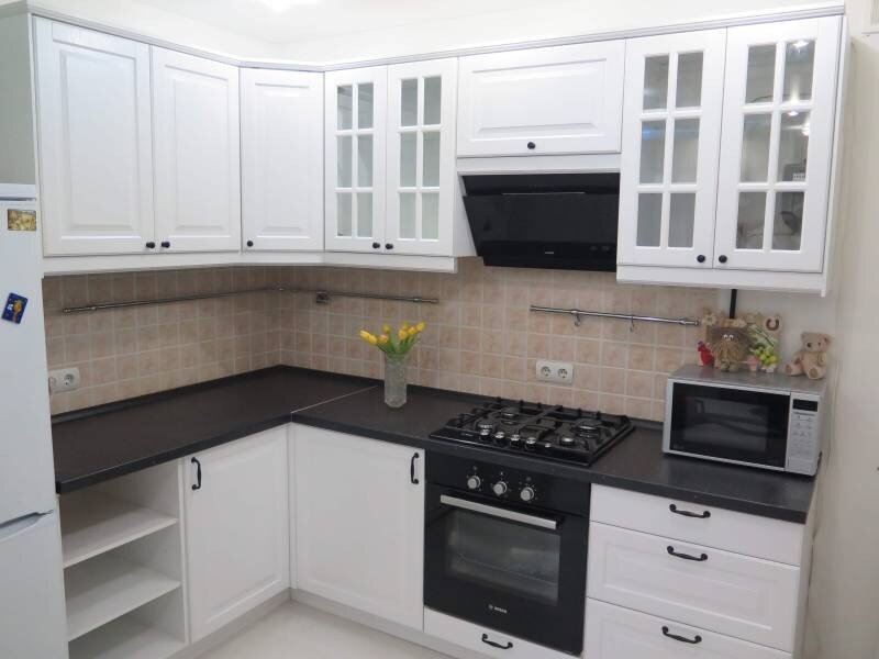 Фартук кухни также должен быть полностью закончен, выведены розетки. Следующий этап - установка кухонного гарнитура, сделать это можно тремя способами: