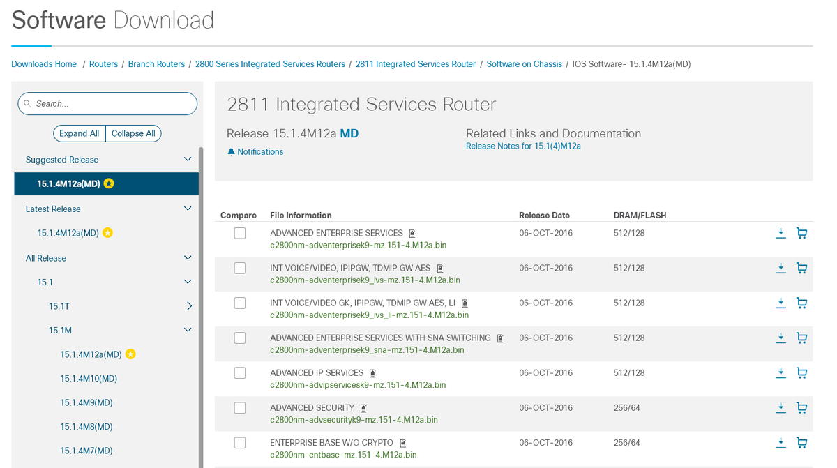 Copyright (c) 2000 by cisco Systems, Inc. Из вывода этой команды мы видим, что текущая версия прошивки – 12.4.(15)T1. Подробнее о версиях IOS можно прочесть в этой статье. Далее найдем новую версию прошивки для нашего маршрутизатора на сайте cisco.com и скачаем её. Затем посмотрим доступный объем flash памяти, где находится текущи