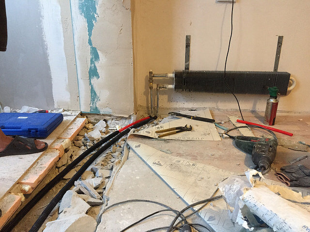 Очень часто при ремонте требуется перенос радиатора отопления на новое место. Лучше сделать это, до заливки пола стяжкой.