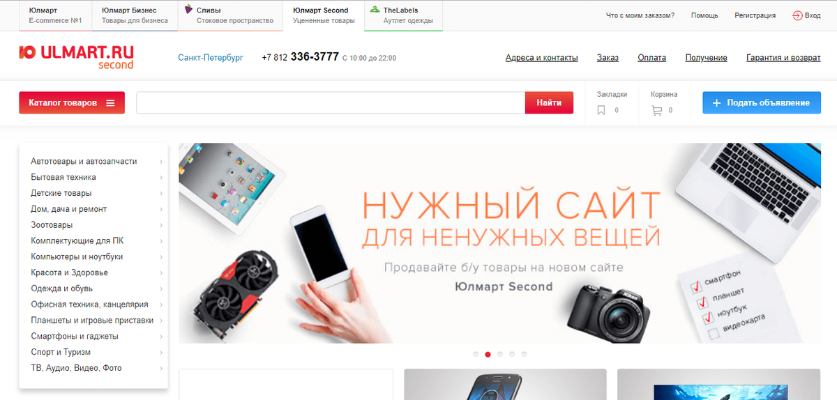Онлайн-магазин «Юлмарт» запустил сервис частных объявлений «Юлмарт Second». Пока он работает в тестовом режиме, как подраздел основного сайта ulmart.ru. «Юлмарт Second» не будет взимать денег за размещение объявлений. Зарабатывать сервис собирается на дополнительных услугах. Так, 190 рублей будет стоить месяц использования камеры хранения, 290-390 рублей – диагностика товара покупателем перед покупкой. Пока эти опции доступны только в Петербурге, но скоро должны появиться в Москве и Краснодаре. Как и Avito, «Юлмарт Second» предоставит возможность продвигать объявления за дополнительную плату. На платформе также работает специальный мессенджер, где продавцы и покупатели могут обсуждать способы оплаты и доставки товара, подписываться на уведомления и следить за изменением цены. Как говорят эксперты, с помощью нового сервиса «Юлмарт» рассчитывает увеличить собственную аудиторию. При этом его создание не потребовало особых затрат, потому что у ритейлера уже есть платформа и своя клиентская