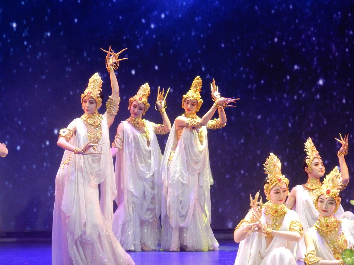 Театр оперы и балета провинции Ганьсу - уникальное учреждение Китая, занимающееся изучением, созданием, исполнением песен и танцев Великого Шёлкового пути. Московским зрителям артисты показали танец "Божественный свет тысячи Будд", завороживший своей красотой и одухотворенностью публику более чем 30 стран мира.