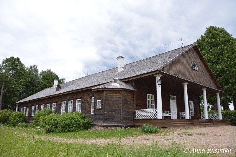 Бывшая полотняная фабрика - "не то сарай, не то манеж", которая в сознании ее обитателей воспринималась не иначе как "Дом Лариных" из "Евгения Онегина", в годы михайловской ссылки в 1824-1826 годах стала для Пушкина "приютом, сеяньем муз одетым"...