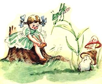 ...На опушку леса Босоножка вышла, когда над деревьями заалела заря. Только тут она почувствовала, что устала и исколола ноги, потому что в пути потеряла клеенчатые туфельки. Но вокруг все было так ново и необыкновенно, что к ней вернулось хорошее настроение.