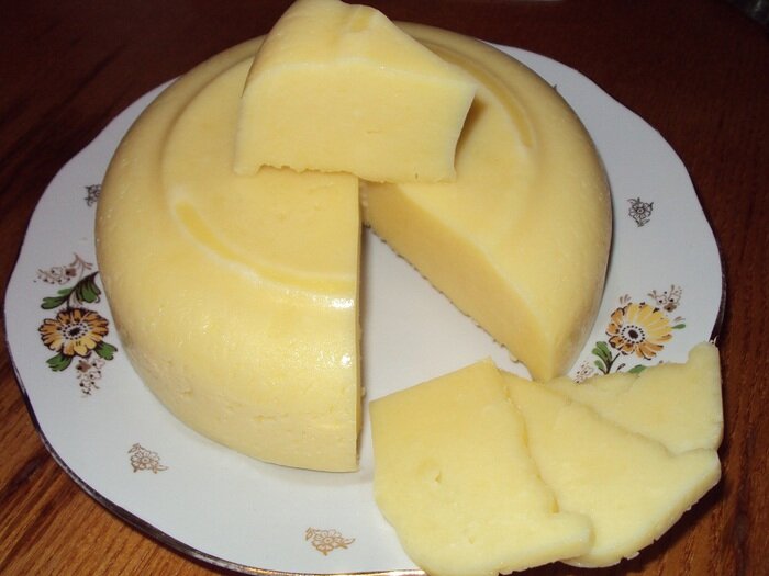 Сегодня хочется рассказать Вам как сделать домашний сыр из творога! Сыр получается плотный, однородный. легко нарезается! Очень вкусный и натуральный. Ингредиенты: Для приготовления домашнего сыра лучше всего использовать домашнее молоко, творог и яйца Приготовление: Влить в кастрюлю с толстым дном молоко. Поставить на огонь, довести до кипения, но НЕ КИПЯТИТЬ!. Как только вы увидели, что молоко хочет закипеть, добавить творог. И с момента, как добавили творог, варить 3 минуты на среднем огне. Затем снять с огня и дать немного остыть. Дуршлаг застелить марлей. сложенной в несколько слоев, и выложить на него творожно-молочную массу. Собрать края марли, и подвесить, чтобы слилась лишняя сыворотка. На водяной бане растопить сливочное масло, добавить соль, соду и отжатую творожную массу. Перемешать до однородного состояния. Варить сыр на среднем огне 5 минут постоянно помешивая. Затем снять с огня и дать сырной массе немного остыть. Яйцо взбить вилкой или венчиком в легкую пену и
