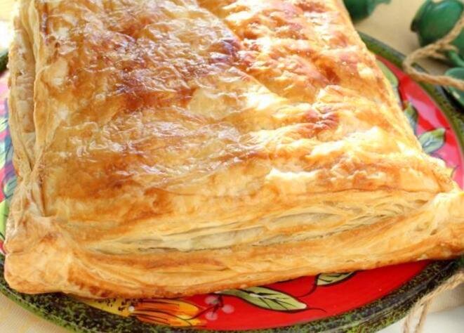 "Мужской" пирог из слоеного теста с мясной начинкой