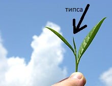 С чайного куста в определенные сезоны собирается урожай. Самым ценным сырьем является «флешь» - это два-три верхних листочка на ветке и чайная почка «типса». Типса — это будущий лист, просто не распустившийся.