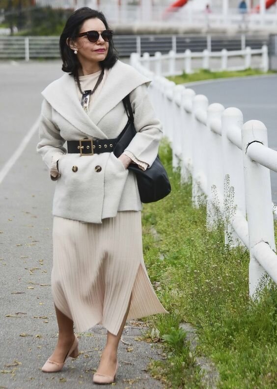 Самые успешные образы 50-летнего fashion-блогера из Испании Кармен Маркус, которые будут уместны и в России Пастельные тона Кармен часто использует в луках пастельные тона, потому что светлые оттенки освежают и молодят образ. Стилисты часто рекомендуют отдавать предпочтением именно пастели при выборе цветного гардероба. Монохромные образы Одним из излюбленных стилистических приемов Кармен Маркус является монохромное сочетание цветов. Аутфит, собранный их разных оттенков одного цвета всегда выглядит выигрышно и стильно. А также говорит об умении женщины правильно подбирать гардероб. Кожаные вещи Мы уже не раз писали, что женщине после 50 можно обзавестись кожаными вещами: юбками, леггинсами, брюками или косухами. Кожа молодит и делает образ более современным. При составлении гардероба кожаные вещи использует и Кармен. Розовый цвет Многие считают, что розовый неуместен в возрастном гардеробе, но блогер из Испании опровергает это мнение. Она часто носит розовые вещи и не выглядит при это
