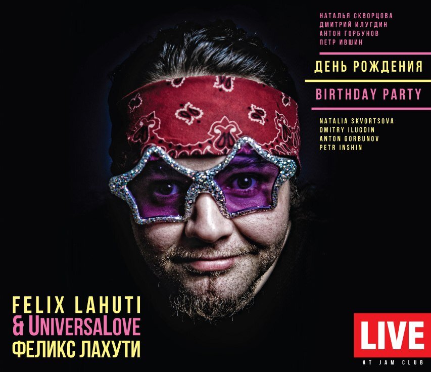 Российский скрипач Феликс Лахути, специализирующийся на стилистике джаз-фьюжн, и его группа UniversaLove выпускают на лейбле ArtBeat Music двойной концертный альбом «День рождения» («Birthday Party»). Альбом был записан в пятницу 13 июля 2018 года в московском JAM Club на вечеринке в честь дня рождения Феликса Лахути (отсюда название альбома) и сведён на студии Digital Arts. Режиссёр записи и сведения — Марк Брянцев, выпускающий продюсер — Николай Big Nick Богайчук, дизайн — Александр Медведев, автор фото на обложке — Кирилл Попов (он же DJ Топор). В альбом вошло семь композиций: четыре авторские пьесы Феликса Лахути (две из них новые, раннее не записывались и не исполнялись), две — басиста Антона Горбунова и одна — барабанщика Петра Ившина (тоже премьерная). В альбоме много искусных экспериментов с нестандартными размерами 6/8, 7/8, 5/8 и элементами африканской этники, пьеса во фри-джазовой стилистике и две мелодичные баллады. 3 декабря 2018 джаз-фьюжн-квартет UniversaLove предста