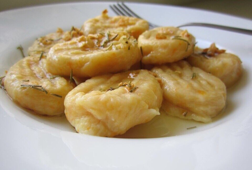 5. Куриное яйцо - 1 шт. Способ приготовления: 1. Отвариваем картофель до готовности (лучше немного переварить, чем не доварить). Воду в которой будем варить картошку солим, перчим и кладем целую луковицу. 2. Из сваренного картофеля необходимо сделать пюре с добавлением яиц, сметаны, соли и перца. 3. К получившемуся пюре добавляем муку. Тесто должно получится мягким, но не липким. Если тесто липнет к рукам, то добавьте еще муки. 4. Из получившегося теста скатываем колбаску и нарезаем ее толщиной 1-1,5 см. 5. Варить ленивые вареники в кипящей и подсоленной воде до тех пор пока они не всплывут. 6. Чтоб готовые
