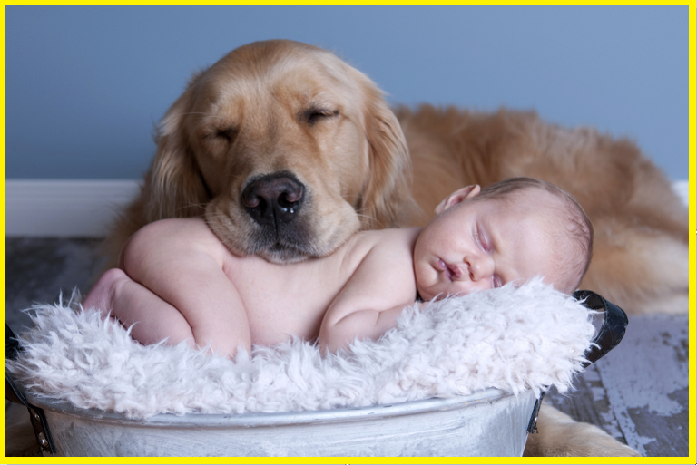 Домашнее животное и новорожденный.