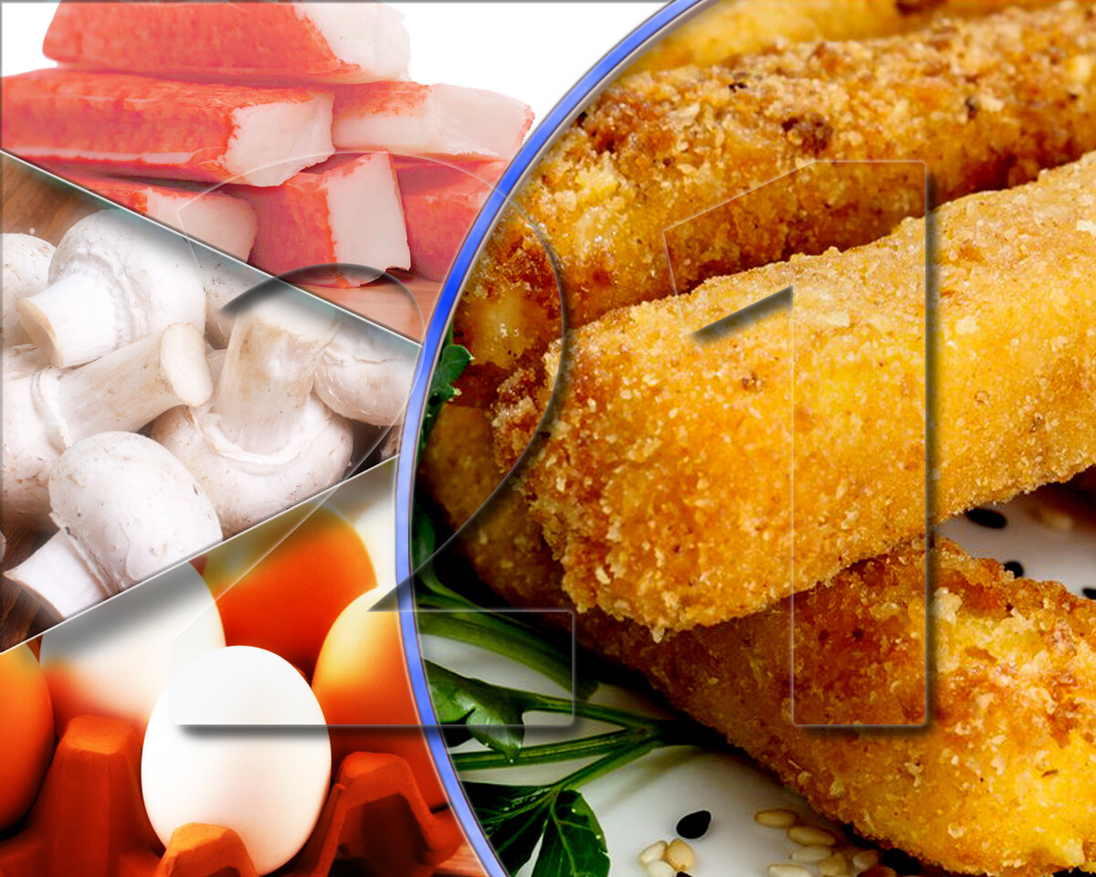 21 праздничная закуска: крабовые палочки с грибами в панировке (№4)