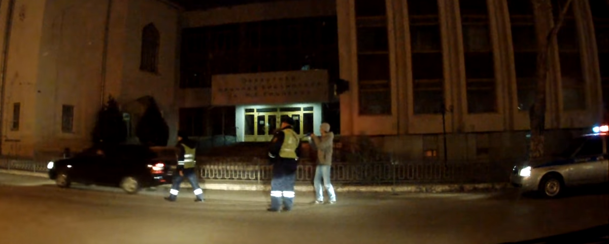 Очередной рейд активистов закончился погоней и столкновением с беззаконием со стороны сотрудников следственного комитета России. При патрулирование ночных улиц города Астрахани, активисты увидели тонированную черную ладу приору без номеров. Водителем данного автомобиля является действующий сотрудник следственного комитета города Астрахани. За сотрудником не раз было замечено движение на автомобиле без номеров. Активисты стали двигаться за автомобилем, параллельно передали ориентировку в ГИБДД. На улице Экспланадная. Сотрудники ГИБДД остановили данную машину. Водитель отказался передавать документы и после не долгой перепалки он нажал на педаль газа и сорвался с места. Сотрудники Гибдд растерялись, испугались и только с подсказки активистов что их снимает камера стали догонять нарушителя. Со второй попытки ГИБДД, удалось остановить водителя и даже получилось его уговорить выйти из автомобиля. При попытке остановить и перекрыть дорогу. Сотрудник Следственного комитета совершил столкнов