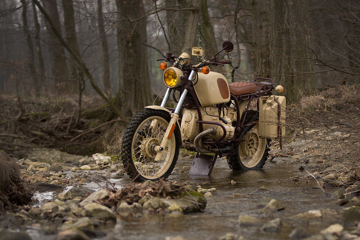 Оригинальное заднее крыло обрезали, а переднее позаимствовали у японского мотоцикла 70-х годов. Желтая передняя фара и спидометр когда-то служили BMW R65, а сигналы поворотов и задний фонарь были сняты с Honda CB450 1974 года.