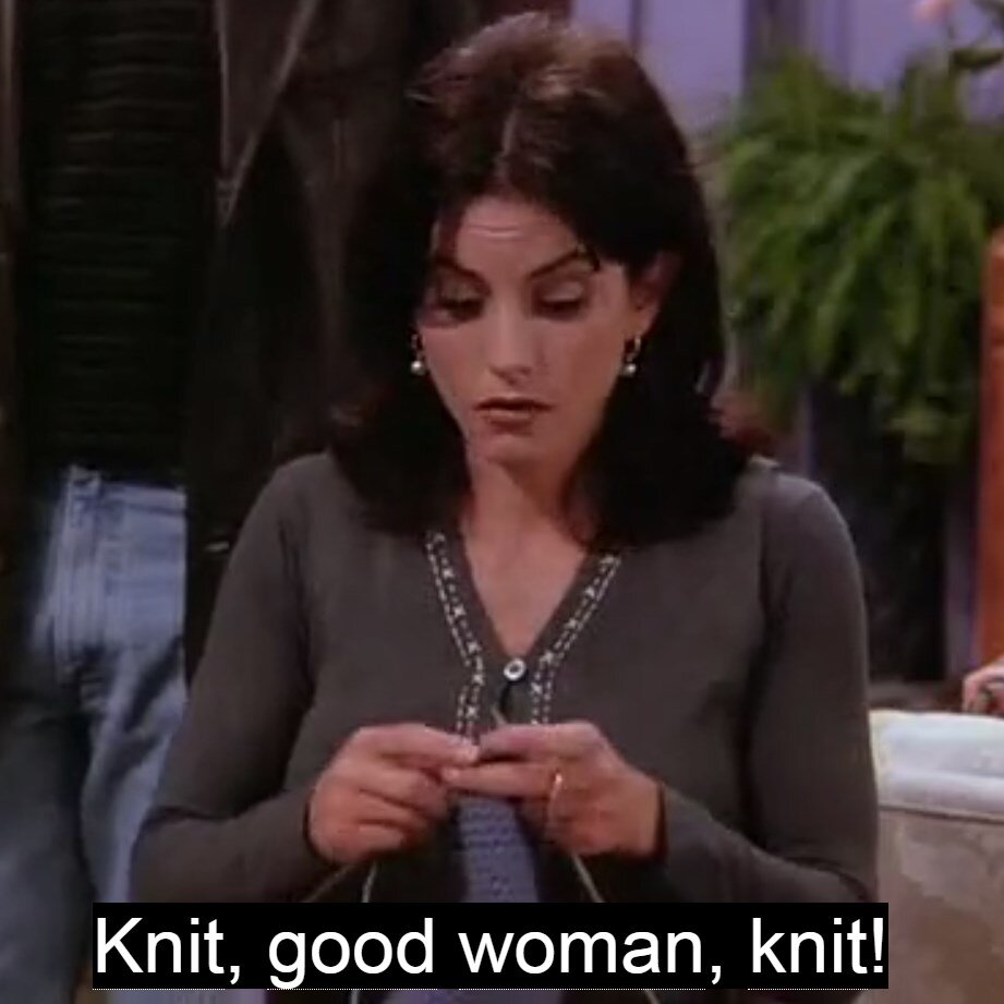 И, знаете, что? Они там все носят вязаные свитера! А Моника (Кортни Кокс) даже вяжет в кадре!👍🏻