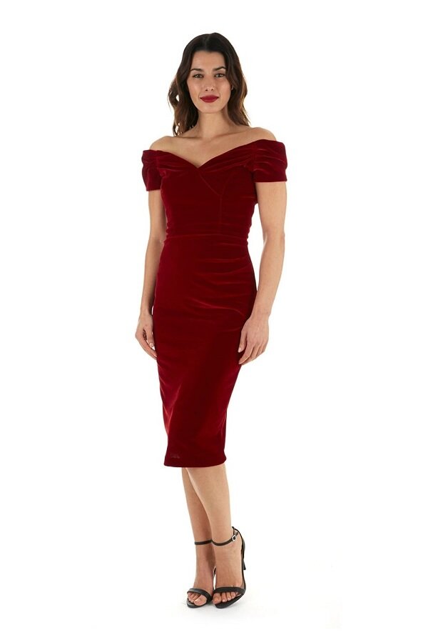 Бархатное платье-футляр хорошо подчеркивает изгибы силуэта