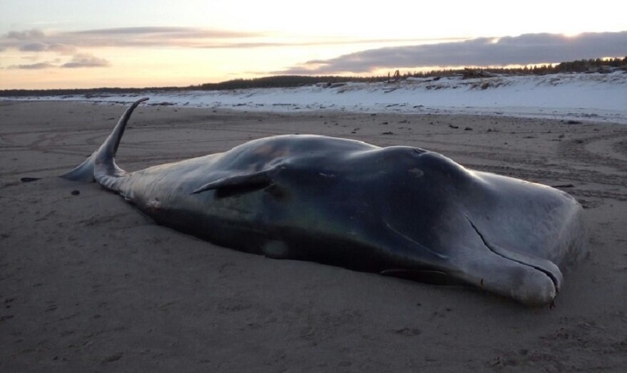 После шторма на берегу Белого моря в Приморском районе Архангельской области местные жители обнаружили неизвестное животное. У полосы прибоя лежал труп многометрового кита. Как удалось выяснить специалистам Мурманского морского биологического института, животным оказался редкий высоколобый бутылконос. «Это китообразное, обитающее на севере Атлантического океана до уровня полярных льдов, известно своей способностью погружаться на большие глубины, питается преимущественно кальмарами», - сообщает информационное агентство «ArcticInfo». Как пояснили учёные, последний раз подобное животное на берегу видели в прошлом веке. Предположительно, кит приплыл в Белое море через Баренцево. Миграции этого вида китов в условиях Арктики мало изучены. Напомним, в 2016 году у побережья Териберки выбросило тело белухи.