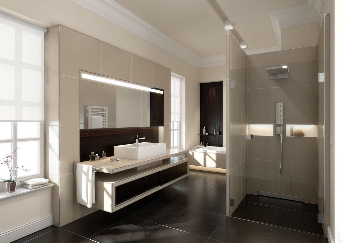 Большинство готовой мебели отвечает вышеуказанным требования, но следует обязательно проговорить моменты возможного давления на мебель. Так же данное решение прекрасно подойдет, когда в комнате присутствует теплый пол, а удобство во время влажной уборки, не доставит неудобств. Не стоит нагромождать мебель массивными гранитными или керамогранитными поверхностями, лучше всего подойдет стеклянная, интегрированная или стеклянная раковина. При заказе раковины отдельно, необходимо чтобы мебель подошла идеально, в таком случае не возникнет проблем при монтаже. Консультация профессионалов не будет лишней.
