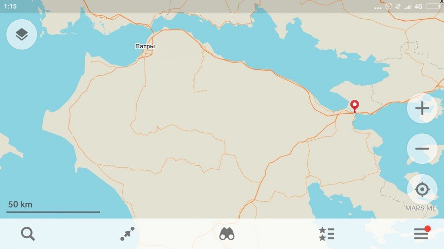 Так Пелопоннес выглядит на карте, а точкой обозначено место Коринфского канала. Коринфский перешеек, через который провели канал, делал Пелопоннес полуостро