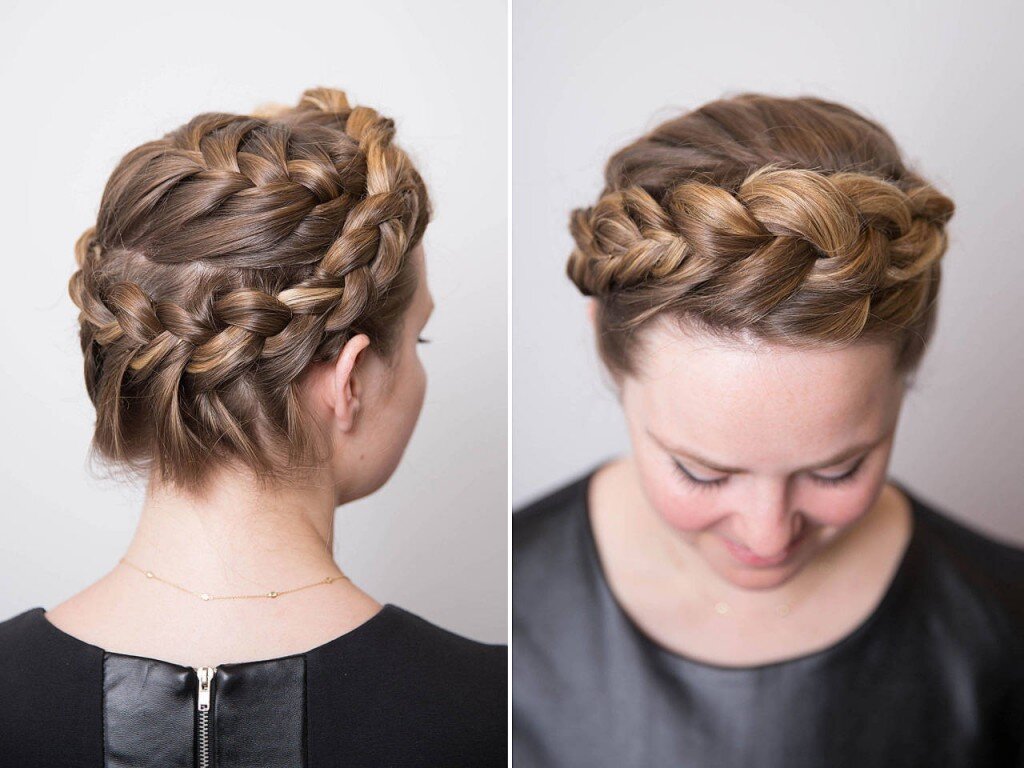 Эффектно смотрится простая прическа с косой-спиралькой, уложенной в виде пучка. Чтобы выполнить такой вариант укладки, понадобится около 3 минут. Причем, длина волос не особо важна. Для начала нужно завязать ниже макушки хвост.
