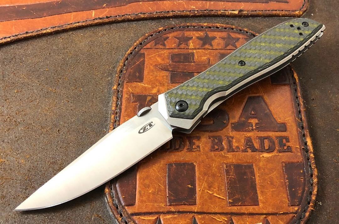 Нож Zero Tolerance 0640 Столь несвойственный для данного производителя и весьма харизматичный нож мгновенно обратил внимание всех не равнодушных к ножам пользователей. Ну что, давайте разбираться, чем под конец 2018 года нас решила порадовать Нулевая Терпимость (именно так в переводе звучит название брэнда)? О ноже в целом Начнем, пожалуй, с дизайнера. Творцом выступил знаменитый ножедел Эрнест Эмерсон. Дизайнер прославился созданием одного из самых быстрых способов открытия складного ножа - Вэйв (крючок на обухе клинка который цепляясь о карман открывал нож). Но в реализации данного ножа Эмерсон решил отойти от стандартного дизайна. Шайба на обухе клинка - выполняет роль шпенька для открытия ножа одной рукой. Особо внимательные знатоки могут заметить отсутствие каких либо ограничителей для фрэйма обусловлено это - карбоновыми накладками, которые попросту не дадут отогнутся фрейму замка. Зеленый карбон (на самом деле смотря на нож в живую, зеленый цвет весьма слабо фигурирует в данны