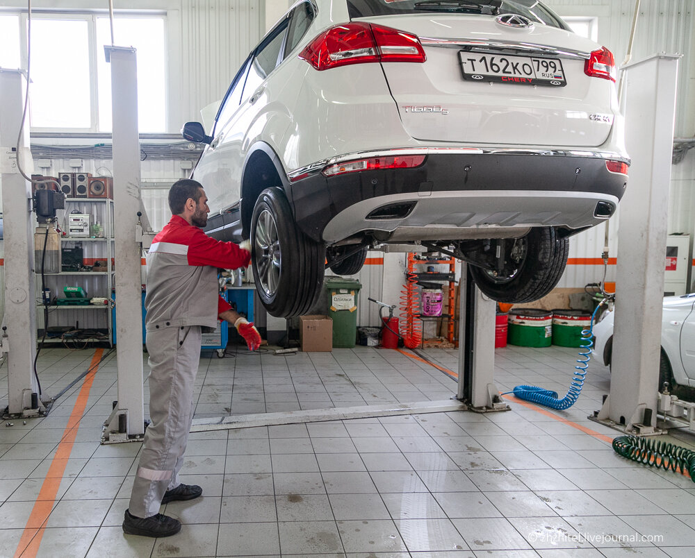 Мне нравится путешествовать на автомобиле. Можно ехать с тем темпом, который нравится, останавливаться для фотосъемки, менять маршрут и заезжать в интересные места. Для того, чтобы поездки доставляли удовольствие, нужно вовремя проходить техническое обслуживание. Покажу, как проходит ТО кроссовера Chery Tiggo 5. Это уже не первое мое путешествие на Chery. В августе мы проехали на автомобиле до Алтая и обратно. 9448 интересных километров по России. Это было очень круто. Машина понравилась. Согласитесь, что фотографии машины на фоне достопримечательностей, это несколько скучно. Поэтому возникла идея посмотреть на машину под другим углом. Давайте посмотрим на машину не только из салона и с дороги, но и снизу. Итак, мы специально заехали в Ростов-на-Дону, чтобы провести техническое обслуживание автомобиля. В идеале было бы провести плановое ТО, но у нашего автомобиля было в районе 7000 километров пробега, поэтому ТО получилось внеплановым и упрощенным, то есть без замены фильтров и жидкост