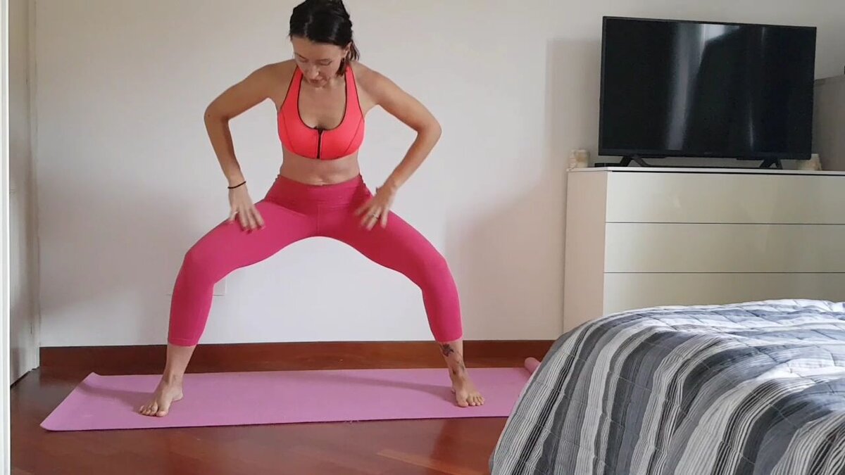 3. Опуститесь как можно ближе к положению, когда бедра параллельны полу. Силой ног расталкивайте колени в стороны. Не давайте им падать внутрь. Разводите бедра как можно шире. Оставайтесь в этом положении как можно дольше. Начните от 10 секунд и постепенно увеличивайте время. Дышите ровно.