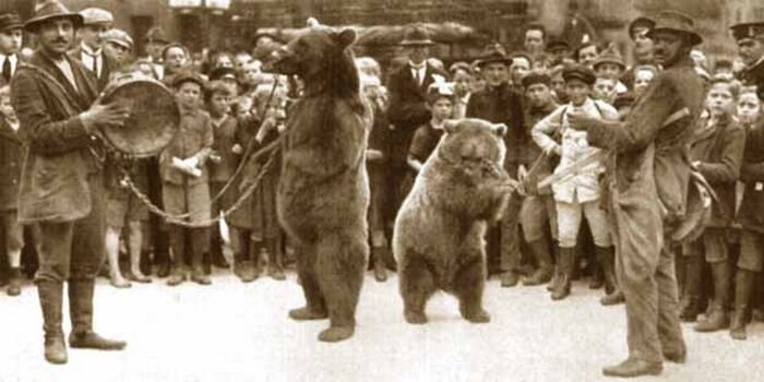 Медведь издавна считается самым могучим зверем русского леса. Он сильный, проворный, любит полакомиться диким медом. Так как на Руси леса были дремучие, то и медведей в них водилось огромное количество. В те времена их дрессировали и занимались этим делом цыгане. Именно у них это получалось лучше всего. На Руси медведь пользовался огромным успехом. С ним часто устраивали различные развлечения. Медвежья потеха – популярная царская забава. Таких зверей содержали на псарном дворе. Медведей можно было часто встретить на ярмарках, где они выполняли различные трюки и радовали публику. Кто занимался дрессировкой медведей на Руси По информации, опубликованной в работе «Фольклор и этнография: У этнографических истоков фольклорных сюжетов и образов», урсары – одна из цыганских этнопрофессиональных групп, которые занимались дрессировкой медведей. Их промысел был широко распространен на Руси. Дрессированные медведи были популярны в те времена. Именно цыгане обучали этих животных танцевать. Они выс