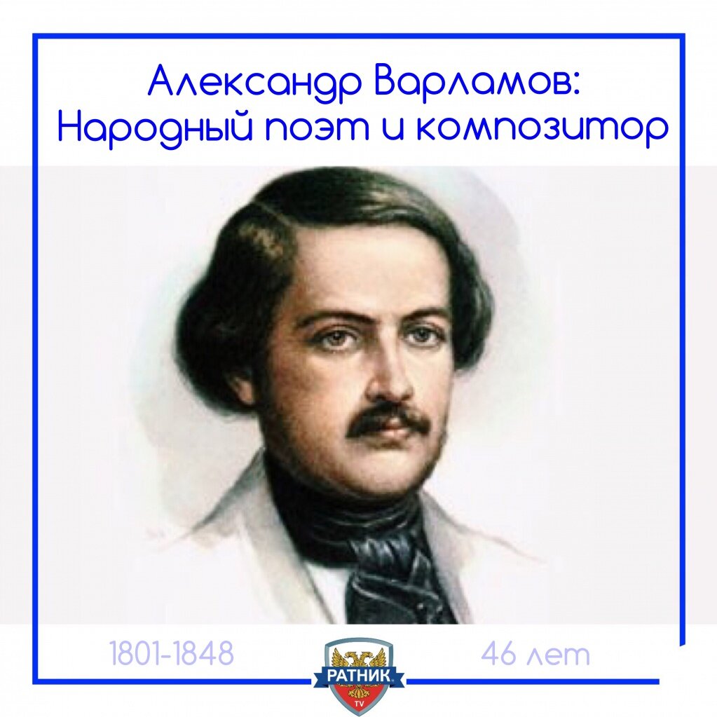 Яркое явление в русской камерной вокальной музыке – Александр Варламов. Его искусство, неразрывно связанное с народными истоками, с городской песенной культурой, выделяется как одна из вершин русского бытового романса. Романсы Варламова охватывают широкий по эмоциональному диапазону круг образов – от светлых до глубоко драматичных. Он родился в Москве 27 ноября 1801 года в семье военного. В детстве Варламов обучался пению в придворной певческой капелле Петербурга. Позднее этого уехал в Гаагу и в 1819 году как регент русской посольской церкви обучал певчих. Вернувшись в Россию, он продолжил преподавать пение и одновременно давать концерты в Петербурге и Москве. В 1829 году Варламов начал работать в певческой капелле, но спустя 3 года был уволен и приглашен на должность помощника капельмейстера московских театров. В 1834 году здесь же становится композитором и служит целых 10 лет. В это время он публикует сборник романсов и издает нотный журнал «Эолова арфа». Варламов известен тем, что п