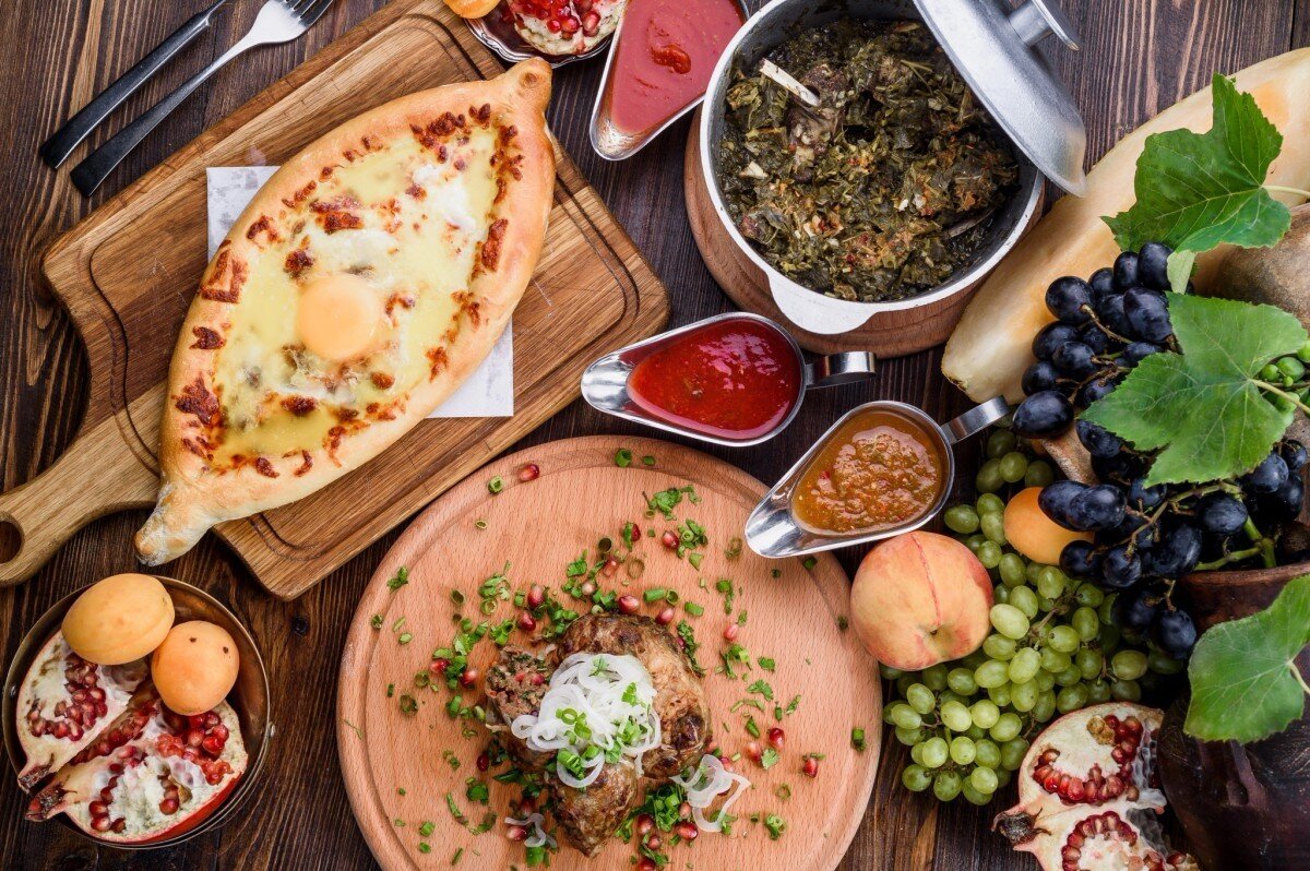 В грузинском языке есть словечко, которое нельзя буквально перевести на русский, да и на любой другой язык. Это слово – შემომეჭამა («шемомечама»). Примерный перевод – «я не хотел, но случайно съел… съел всё!». Ведь бывает так, что еда настолько вкусная, что просто невозможно остановиться. Особенно в Грузии! Грузия – не для тех, кто считает калории. Это путешествие для истинных ценителей вкусной, аппетитной и, что немаловажно, качественной и «здоровой» еды. Это настоящее пиршество вкуса – кто же не слышал о знаменитых грузинских застольях, о замысловатых мудрых тостах тамады, о кавказском хлебосольстве и гостеприимстве? Как ароматны хачапури с тягучим сыром внутри, как заманчиво дымятся шашлыки, как нежны сациви с курицей, как хорош в меру острый чахохбили! А сочные свежие овощи, а овощи тушёные, из которых готовится бесподобный аджапсандали, а фрукты, которые просто тают во рту? Лобио, хинкали, ткемали, сулугуни - будто музыка звучит! А какое застолье без грузинского вина? Эта стр