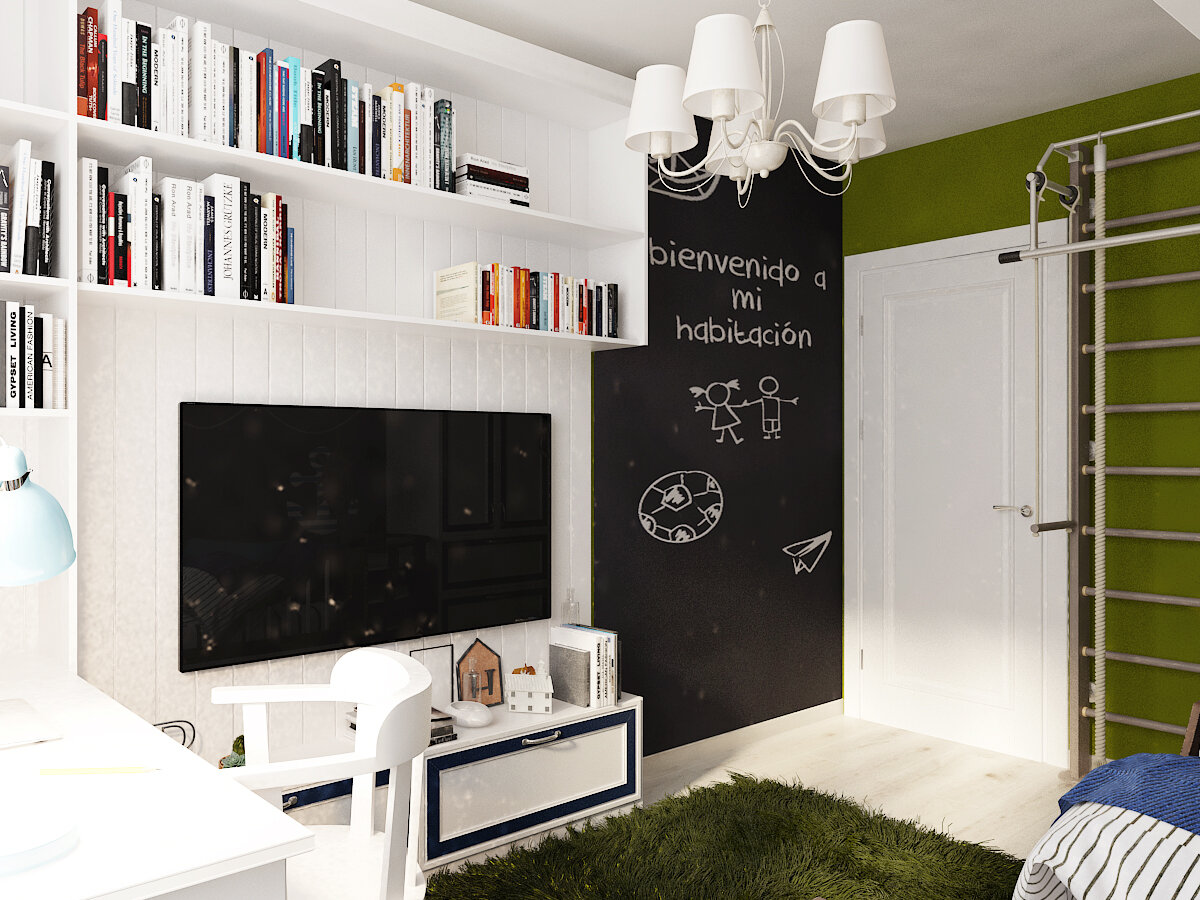 В этой квартире нашлась возможность для оборудования детского «кабинета» и конечно эта комната должна быть «умной» и современной.